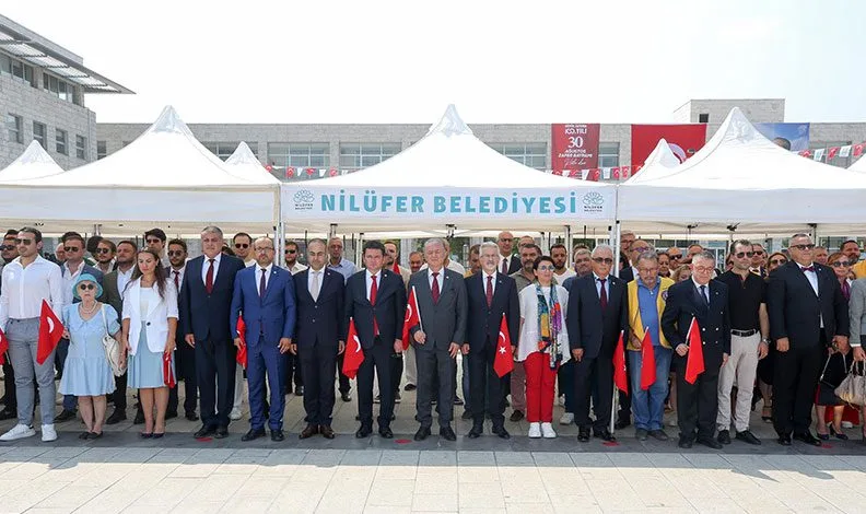 Tören, Atatürk heykeline çelenk sunumu ve İstiklal Marşı’nın okunmasıyla başladı. Törende konuşan Nilüfer Belediye Başkanı Turgay Erdem, bundan 100 yıl önce yaşanan Büyük Taarruz ve Başkomutanlık Meydan Muharebesi’nin Türkiye tarihinde çok önemli bir yere sahip olduğunu ifade etti. Başkan Erdem, “Birinci Dünya Savaşı sonrası İtilaf Devletleri türlü bahanelerle Anadolu’yu işgal ederken, Halide Edip’in ifadesiyle; ‘Türk’ün Ateşle İmtihanı’ da başlamıştı. İki seçenek vardı; ya teslim olunacak ya da yıkılan yakılan bir ülke, ayağa kalkacak ve küllerinden doğacaktı. Çok şükür ki ikincisi oldu. Kuvâ-yi Milliye ruhu şahlandı ve yıllarca süren kurtuluş mücadelesi zaferle sonuçlandı. Mustafa Kemal’in başkumandanlığında 26 Ağustos’ta başlayıp, 30 Ağustos’ta Dumlupınar’da zaferle sonuçlanan Başkomutanlık Meydan Muharebesi, kurtuluş mücadelesinin en önemli dönüm noktası oldu. Bu zafer; dünya tarihinin gördüğü en büyük kahramanlık destanlarından biridir ve 30 Ağustos 1922, Kurtuluş Savaşı’nın zaferle sonuçlandığını müjdeleyen bir tarih olarak da kayıtlara geçmiştir” diye konuştu.