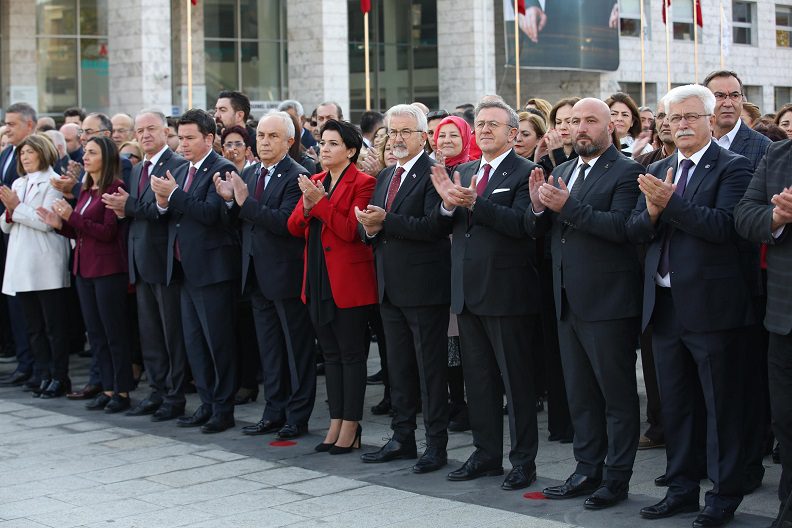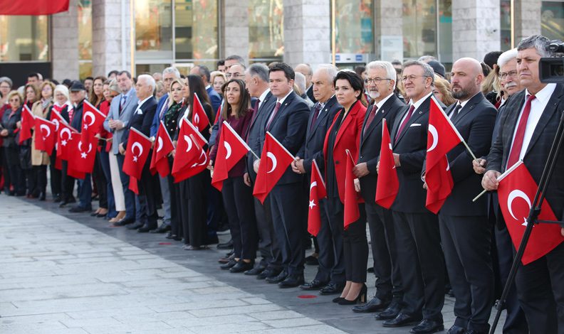 Törende konuşan Nilüfer Belediye Başkanı Turgay Erdem, “Bugün yeni bir yüzyılın eşiğinde Cumhuriyetimizin 99. yılını kutluyor ve bu kutsal emaneti, ikinci yüzyıla taşımanın gururunu paylaşıyoruz” dedi.