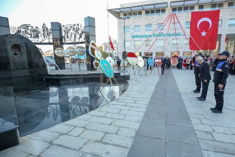 Bursa Nilüfer’de Cumhuriyet’in ilanının 99. yılı kutlamaları Atatürk Anıtı’na çelenk sunumu ile başladı.