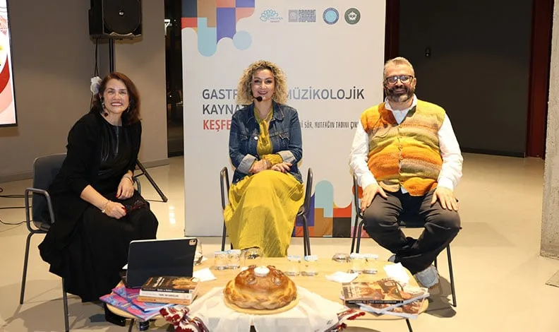 Nilüfer Belediyesi Pancar Deposu’nda mutfak kültürü ile müziği harmanlayan “Gastroetnomüzikolojik Kaynatmalar” etkinliğinde bu ay, sofraların baş tacı olan “ekmek” konuşuldu. Prof. Dr. Özlem Doğuş Varlı’nın sunumuyla gerçekleşen buluşmada, ekmeğin sadece bir besin maddesi olmadığı; ritüelleri, şarkıları ve inanışıyla toplumsal hafızanın taşıyıcılarından biri olduğu vurgulandı. Yoğun ilgi gören söyleşiye, Nilüfer Belediye Başkan Yardımcısı Bukle Erman da katıldı.