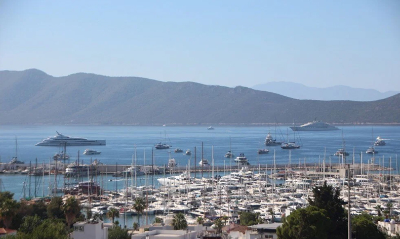 Yat, limanlara sığmadığı için Bodrum açıklarına demirlemek zorunda kaldı.