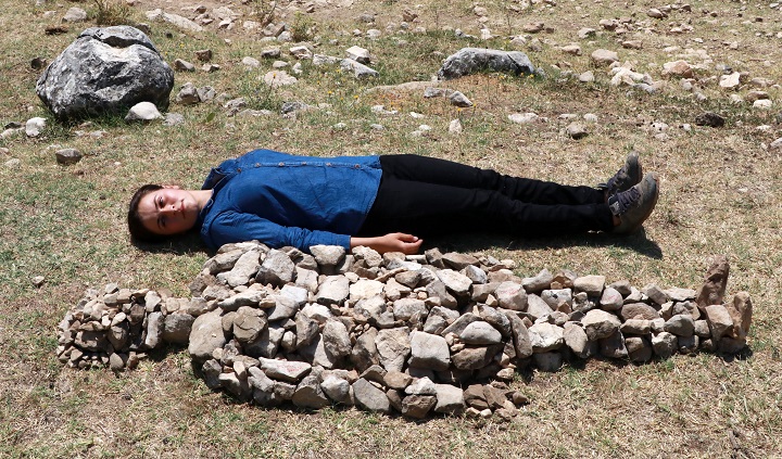 Mimar Sinan Üniversitesi Grafik Tasarım Bölümü 3’üncü sınıf öğrencisi Büşra Öğüt, okulunun pandemi sürecinde tatil olması nedeniyle Ağlasun ilçesindeki 1100 rakımlı Akdağ Yaylası’ndaki evinde ailesiyle birlikte yaşıyor. Son günlerde yaşanan kadın cinayetlerine duyarsız kalmayan Büşra Öğüt, Akdağ Yaylası’ndaki arazide, küçük taşlarla kadın vücudunu betimleyen heykel yaptı.