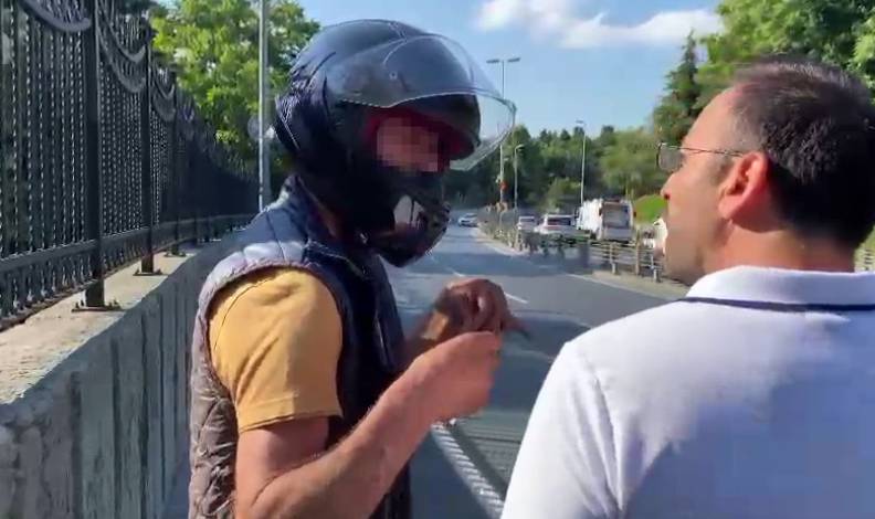 Ardından dolandırıcıyı takip etmeye başlayan basın mensupları, onu yine bir aracı durdurup para isterken görüntüledi. Görüntülendiğini fark eden dolandırıcı basın mensuplarının üzerine gelerek tehditler savurdu. “O kaydı silin daha kötü olacak”, “Bana bakın o kayıt bir yerde çıksın ikinizin simasını aldım, sizinle görüşeceğim” diyerek gazetecilerin üzerine yürüdü.