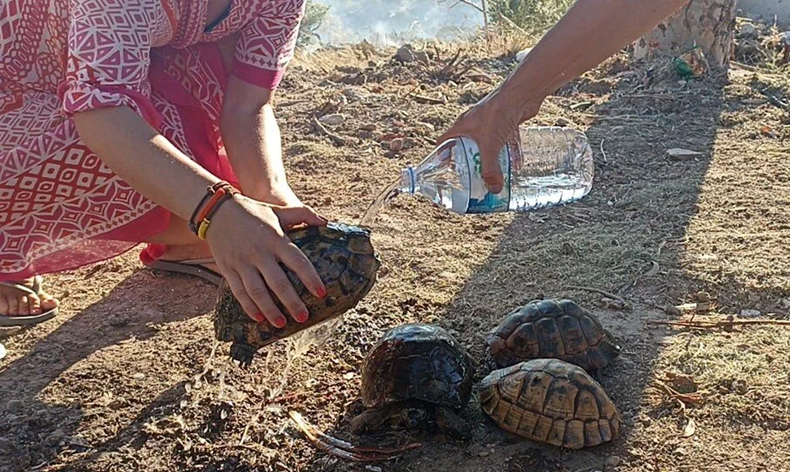 Yangın bölgesinde bazı kaplumbağalar, ekipler ve vatandaşlarca kurtarıldı. Kaplumbağalar, üzerlerine su dökülerek serinletilmeye çalışıldı. Kontrol altına alınan ve soğutma çalışmalarının sürdüğü yangında, yaklaşık 5 hektarlık alanın zarar gördüğü öğrenildi.