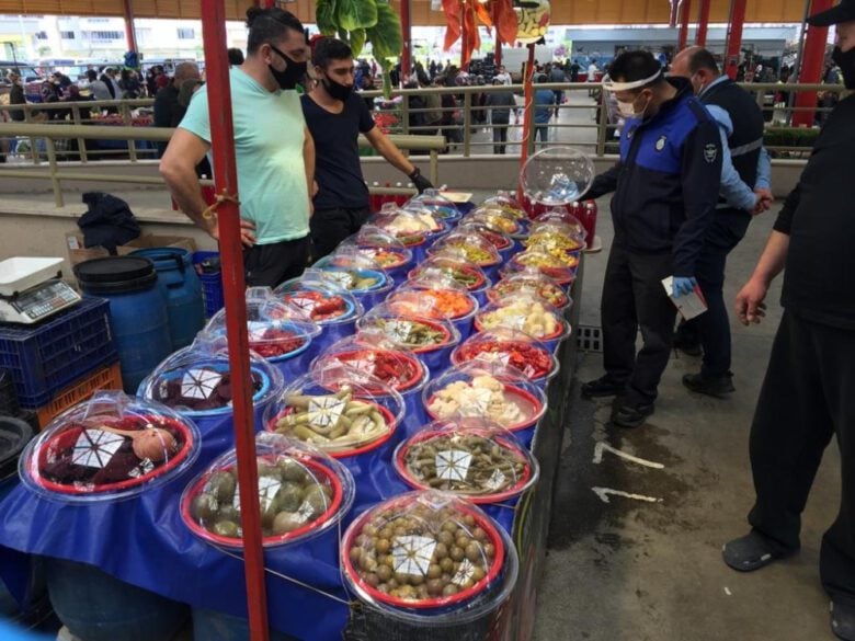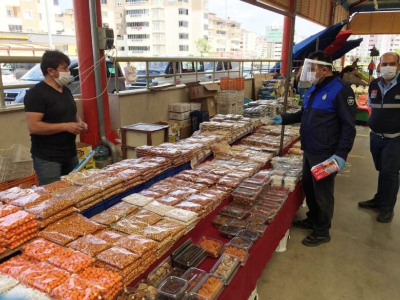 Zabıta ekipleri, mahallelerde kurulan pazar yerlerinde ise maske ve sosyal mesafe denetimi yaparken, pazarcı esnafı ve alışverişe gelen vatandaşlara da maske dağıttı. İçişleri Bakanlığı tarafından yayınlanan, pazar satış yerlerinde her bir satış yeri arasında en az 3 metre mesafenin olmasına yönelik genelgeye uyup uymadıklarını kontrol eden ekipler, yasağa uymadığı tespit edilen 65 yaş üstü ve 20 yaş altı pazarcı esnafı da evlerine gönderdi.