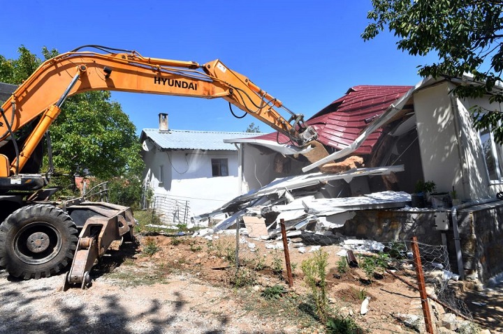 İmar planında yeşil alan olarak belirlenen arazi üzerine inşa edilen prefabrik yapının yıkımında herhangi bir olumsuzluk yaşanmadı.