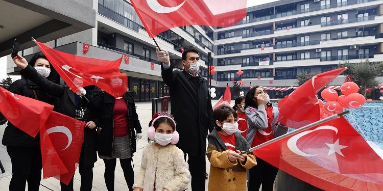 Osmangazi Belediyesi tarafından yaptırılan Türkiye’nin örnek kentsel dönüşüm projelerinden olan Soğanlı Mahallesi’nde meydan ve balkonları Türk bayrakları ile balonlarla süslendi.
