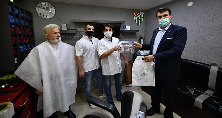 Dünyayı etkisi altına alan yeni tip korona virüs salgınına karşı İçişleri Bakanlığı’nın genelgesi ile faaliyetlerine 21 Mart tarihi itibariyle geçici olarak ara veren berber ve kuaförler, 11 Mayıs Pazartesi günüyle birlikte yeniden hizmete başladı. Osmangazi Belediye Başkanı Mustafa Dündar, 50 günün ardından kapılarını açan berber ve kuaför esnafını ziyaret etti. Esnafa maske dağıtan Başkan Dündar, hayırlı işler temennisinde bulundu. Salgın dolayısıyla hayatın birçok noktasında değişiklikler yaşadığımıza vurgu yapan Dündar, berber ve kuaför esnafının da virüs nedeniyle yeni bir döneme girdiğini ifade etti. Başkan Dündar, bu yeni sürece hazır olmaları açısından Osmangazi’de faaliyet gösteren yaklaşık 1400 berber ve kuaför dükkanını dezenfekte ederek müşterilerin kullanımına hazır hale getirdiklerini söyledi.