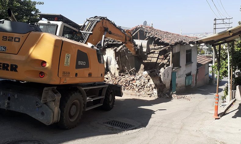 Osmangazi Belediyesi, vatandaşların emniyeti ve sağlığı açısından risk oluşturan metruk binaların yıkımını sürdürüyor. Vatandaşlardan gelen talep ve şikayetleri dikkate alan Yapı Kontrol Müdürlüğü ekipleri, son olarak Hamitler Mahallesi Tepe Sokak üzerinde yer alan metruk binayı yıktı. Belediye ekipleri, hukuki ve idari süreçleri tamamlanan binanın yıkımı sırasında herhangi bir olumsuzluk yaşanmaması için yıkım öncesinde gerekli tüm tedbirleri aldı. Yıkımın ardından ortaya çıkan molozlar ise belediye ekipleri tarafından kamyonlara yüklendi.