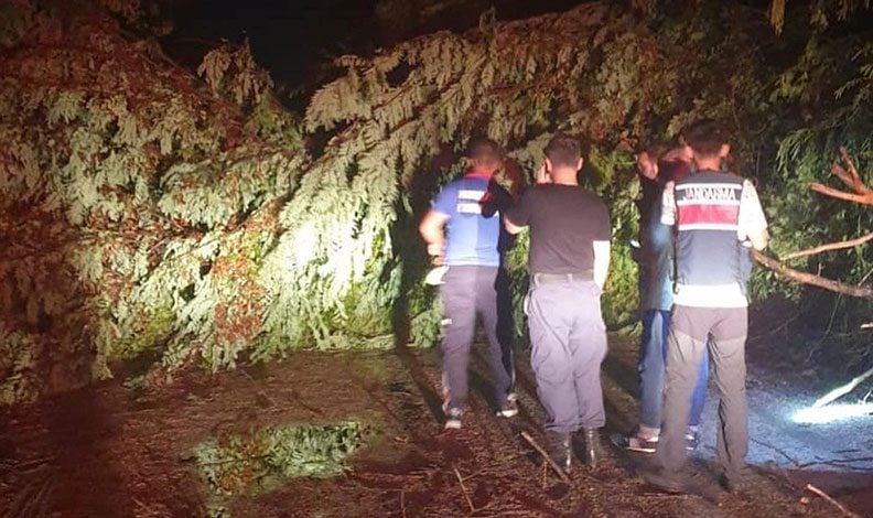 Rüzgar ve sağanak nedeniyle bazı çatılar zarar görürken ağaçlarda kökünden devrildi. İlçeye bağlı Yazıbozu Köyü’nde yola devrilen ağaçlar itfaiye ekiplerinin çalışma sonunda kaldırıldı.