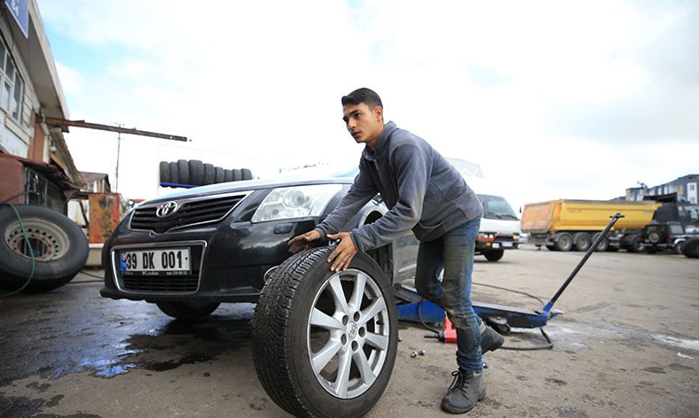 Uygulamanın başlamasına günler kala araçlarına kış lastiği taktırmak isteyen sürücüler, sanayi sitelerindeki lastikçilere geldi. Bazı sürücüler depolarındaki lastikleri değişime getirirken, bazıları ise yeni kış lastiği aldı.