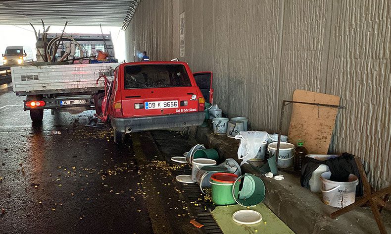 Kamyonete ok gibi saplanan otomobildeki sürücü M.U. ve yolcu konumunda bulunan G.U. sıkışarak yaralanırken, otomobilde bulunan zeytinler de yola saçıldı. Kazayı görenler durumu 112 Acil Çağrı Merkezi’ne bildirdi. İhbar üzerine bölgeye itfaiye, sağlık ve polis ekipleri sevk edildi. Kısa sürede olay yerine gelen Aydın Büyükşehir Belediyesi İtfaiye Daire Başkanlığı’na ekipleri yaralıları sıkıştıkları otomobilden çıkartarak sağlık ekiplerine teslim etti. Sağlık ekipleri tarafından ilk müdahaleleri yapılan yaralılar ambulanslarla Aydın Devlet Hastanesi’ne kaldırılarak tedavi altına alındı. Kaza nedeniyle trafiğe kapatılan alt geçidin tek şeridi otomobilin çekici marifeti ile olay yerinden kaldırılması ve yoldaki temizlik çalışmalarının ardından tekrar trafiğe açıldı.