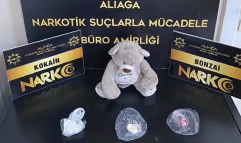 İzmir Narkotik Suçlarla Mücadele Şube Müdürlüğüne bağlı Aliağa Narkotik Suçlarla Mücadele Büro Amirliği ekipleri, ilçede uyuşturucu ticaretini önlemeye yönelik son 10 günde 3 ayrı operasyon gerçekleştirdi. Yapılan çalışmalardan birinde, İstanbul’dan Aliağa ilçesine uyuşturucu madde sevk edeceği belirlenen K.S. adlı şüpheli, otobüsten inip yürüyerek uzaklaştığı esnada polis tarafından durduruldu. Polise yakalandığını anlayan K.S., üzerinden uyuşturucu madde çıkartarak polise teslim etti. Bu esnada otobüs şoförünün kendisini bir kadının sürekli aradığını ve otobüste eşyası olduğunu söyleyerek şüphelenmesi üzerine durum polise bildirildi. Otobüsteki eşyasını almaya gelen kadını bekleyen polis, kadının bir poşet aldığını görerek kendisini durdurdu. Poşet içerisinden çıkan oyuncak ayıcığın içerisine gizlenmiş halde uyuşturucu madde polisin dikkatinden kaçmadı. Oyuncağın içerisinden çıkan maddenin yaklaşık 10 gram sentetik kannobinoid maddesi olduğu ve çoğaltılarak 100 kat fazla uyuşturucu elde edilebileceği öğrenildi. K.S. ve N.D., polis tarafından gözaltına alındı.