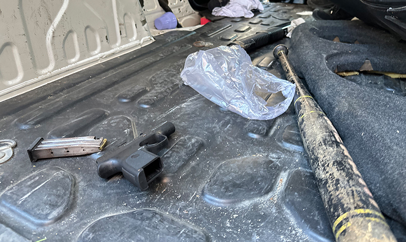 Olay yerine gelen polis şüpheli olarak duran hafif ticari aracı alınan izinlerin ardından aradı. Görünüş itibariyle hiç bir şey gözükmeyen araç, detaylı aranınca pompalı tüfek ve tabanca ele geçirildi. Tabancanın atışa hazır olması dikkatlerden kaçmazken polis olayla ilgili soruşturma başlattı.