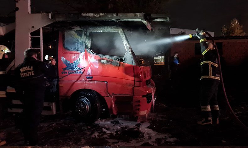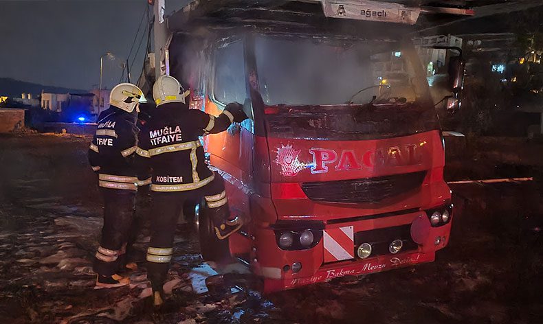 Yangın, Konacık Mahallesi Gazderesi Caddesi üzerindeki bir arazide gece saatlerinde meydana geldi. Edinilen bilgiye göre, park halindeki otomobil taşımakta kullanılan kamyonda henüz bilinmeyen bir nedenle yangın çıktı. Bir gürültü sonrası çıktığı ifade edilen yangın, kısa sürede kamyonun ön kısmını kapladı. Yangını fark eden vatandaşlar durumu 112 Acil Çağrı Merkezi’ne bildirdi. İhbar üzerine bölgeye itfaiye ve polis ekipleri sevk edildi. Kısa sürede olay yerine gelen Muğla Büyükşehir Belediyesi İtfaiye Daire Başkanlığı Bodrum Grup Amirliği ekipleri yangına müdahale ederek söndürdü. Yangının çıkış sebebinin belirlenebilmesi için inceleme yapılırken kırık cam parçaları tespit edildi. İlk belirlemelere göre yangının kundaklama sonucu çıktığı bildirildi.