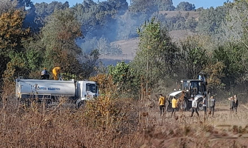 Rüzgarın etkisiyle yayılan yangın Küçükelmalı Tabiat Parkına ulaşmadan 2 saatlik çalışma sonunda kontrol altına alındıktan sonra söndürüldü.