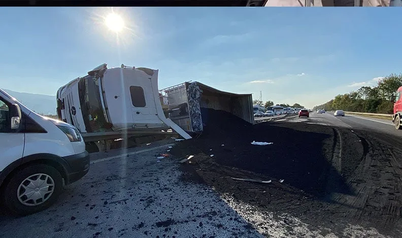 Kaza, TEM Otoyolu Kartepe geçişi Ankara istikameti Tepetarla mevkiinde meydana geldi. Edinilen bilgiye göre, M.Ö. idaresindeki 42 AJF 541 plakalı Mercedes tır, refüje çarparak devrildi. Tır, 50 metre sürüklenerek durabildi. Tırın kasasında bulunan petrokok yola saçıldı. İhbar üzerine olay yerine sağlık, jandarma ve itfaiye ekipleri sevk edildi. Kısa sürede olay yerine gelen ekipler, yaralı sürücüyü ilk müdahalenin ardından ambulansla hastaneye kaldırdı. Kaza sebebiyle 2 yönde de aksamalar meydana geldi. Jandarma ekipleri tarafından trafik kontrollü olarak sağlanıyor.