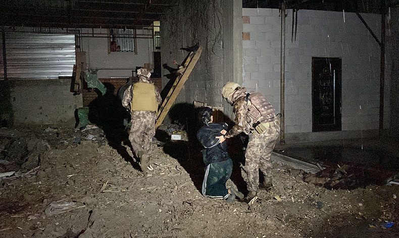 Bu sabah operasyon için düğmeye basan ekipler, Özel Harekat polislerinin de desteğiyle belirlenen adreslere şafak operasyonu gerçekleştirdi. Kapılar koçbaşlarıyla tek tek kırılarak içeri girilirken, operasyon bölgesinde yoğun güvenlik önlemi alındı. Mersin’in merkez Akdeniz ilçesine bağlı Siteler Mahallesi’nde bulunan bir adrese giden polisleri fark eden şüpheli bir kadın ise evin arkasındaki camdan atlayıp kaçmaya çalışırken, kovalamaca sonucu kıskıvrak yakalandı.