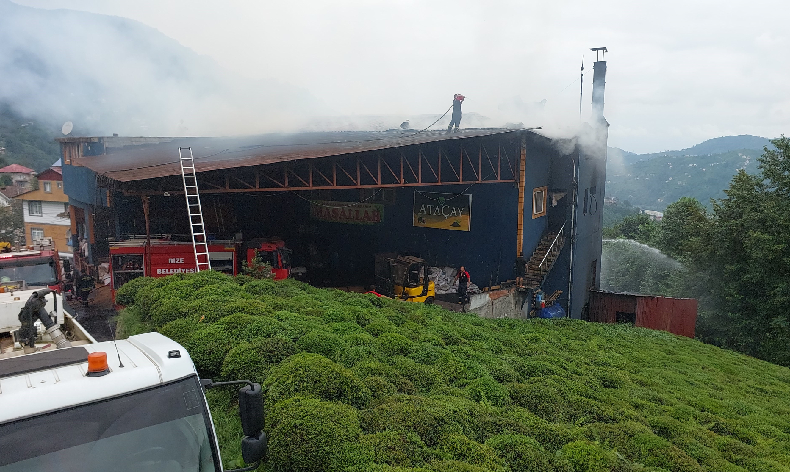 Rize’de çay fabrikasında yangın çıktı