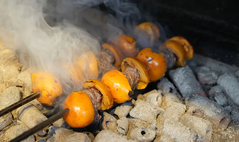 Malta eriği olarak da bilinen yenidünya meyvesi, kıymayla birlikte şişlere dizilerek ocakta pişirilirken, görüntüsü ve lezzetiyle turistlerin de ilgisini çekiyor.