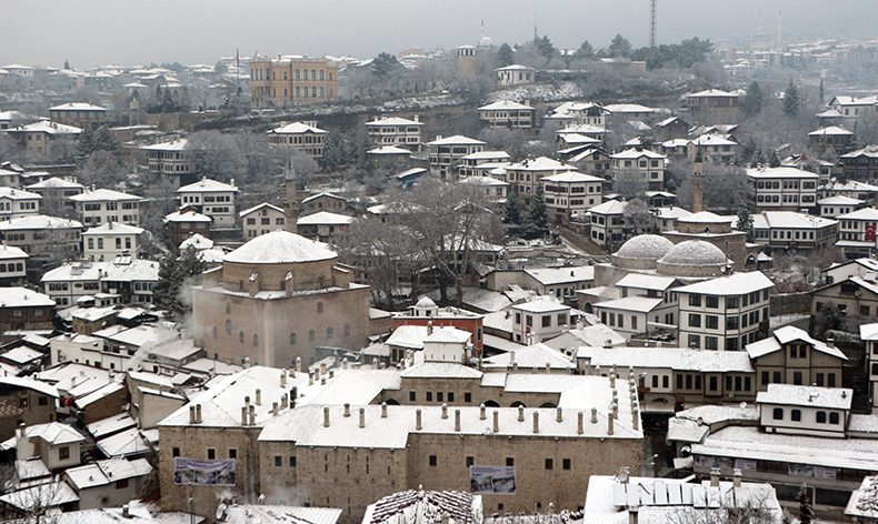 Osmanlı döneminden kalma han, hamam, cami, konak, çeşme ve köprüleriyle açık hava müzesini andıran Safranbolu, geç gelen kar yağışıyla beyaza büründü. Sabah saatlerin etkili olan kar yağışıyla birlikte Tarihi Çarşı bölgesinde bulunan tarihi konak ve yapılar karla kaplandı. Kartpostallık görüntülerin ortaya çıktığı ilçede kar yağışı vatandaşları da mutlu etti. Ali Yardibi, geç olmasına rağmen kar yağışının gelmesinden dolayı mutlu olduğunu belirtti. Yardibi, “Burası Safranbolu’yu kuş bakışı ve panoramik olarak gören bir alan. Kar bu sene beklediğimizden daha geç geldi. her kış sezonu kar gelince biz Safranbolu gelinliğini giydi deriz bu sene de geç oldu ama Safranbolu gelinliğini giydi. İnşallah kar yağışı biraz daha devam eder ve kuraklığa bertaraf eder” dedi.