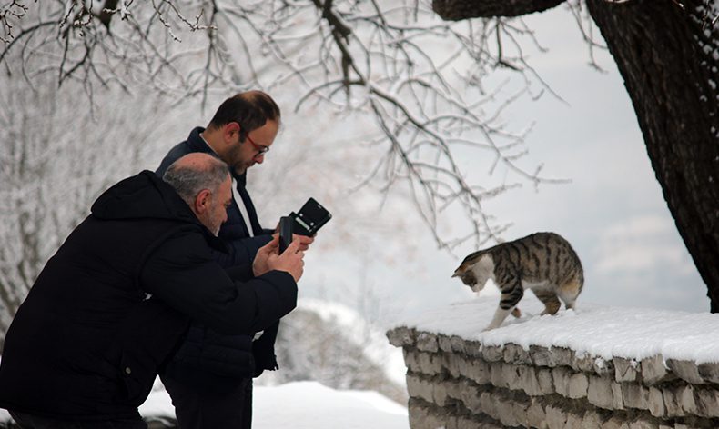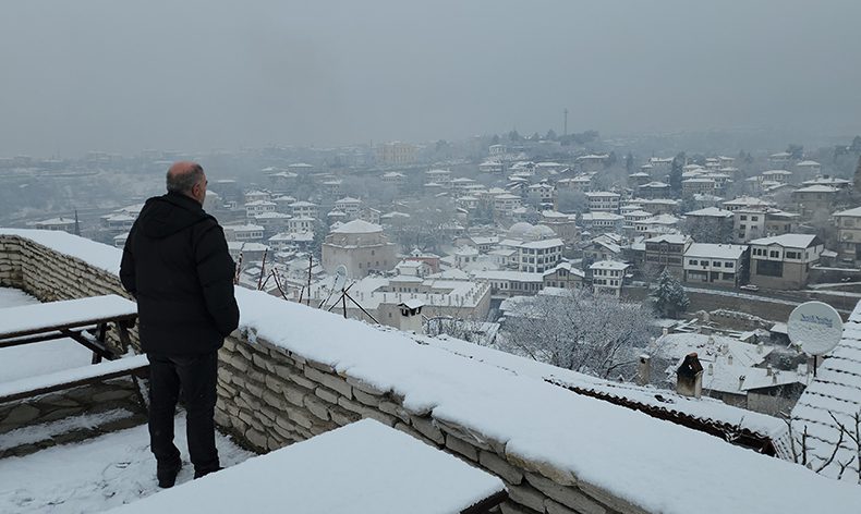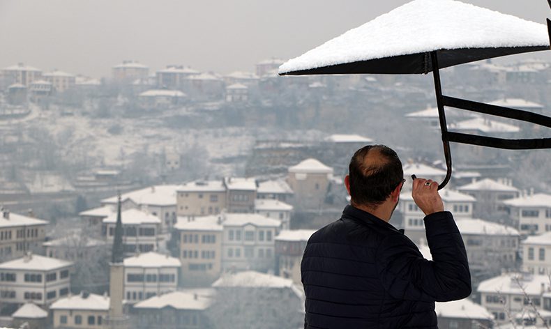 Osmanlı döneminden kalma han, hamam, cami, konak, çeşme ve köprüleriyle açık hava müzesini andıran Safranbolu, geç gelen kar yağışıyla beyaza büründü. Sabah saatlerin etkili olan kar yağışıyla birlikte Tarihi Çarşı bölgesinde bulunan tarihi konak ve yapılar karla kaplandı. Kartpostallık görüntülerin ortaya çıktığı ilçede kar yağışı vatandaşları da mutlu etti. Ali Yardibi, geç olmasına rağmen kar yağışının gelmesinden dolayı mutlu olduğunu belirtti. Yardibi, “Burası Safranbolu’yu kuş bakışı ve panoramik olarak gören bir alan. Kar bu sene beklediğimizden daha geç geldi. her kış sezonu kar gelince biz Safranbolu gelinliğini giydi deriz bu sene de geç oldu ama Safranbolu gelinliğini giydi. İnşallah kar yağışı biraz daha devam eder ve kuraklığa bertaraf eder” dedi.