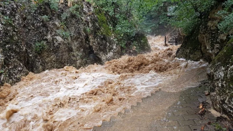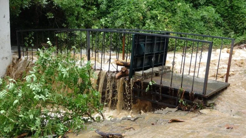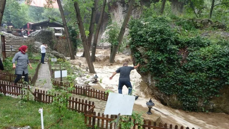 Dün gece itibariyle etkili olan sağanak yağış Karabük’te hayatı olumsuz etkiledi. Safranbolu ilçesinde bulunan Gizli Cennet Dereköy Dizdar Taş Değirmeni ile Bulak Mencilis Mağarasının yanında bulunan dere yatakları yağışların şiddetini artırması sonucu taştı. Taş değirmeninde bulunan restoranın masa ve sandalyeler derenin taşmasıyla sulara kapıldı. Restoran çalışanları geride kalan malzemeleri güvenilir alana taşıdı. Alanda bulunan bir köprü de sel nedeniyle yıkılma tehlikesiyle karşı karşıya kaldı. Durumun bildirilmesi üzerine olay yerine itfaiye ekipleri sevk edildi.