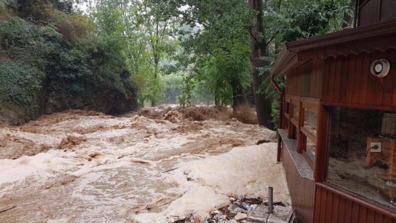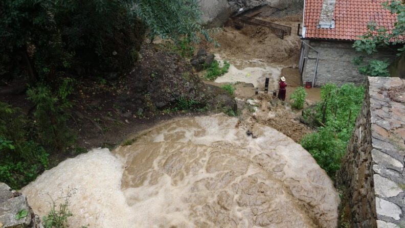 Karabük’ün Safranbolu ilçesinde etkili olan sağanak yağış nedeniyle taşan dereler dükkanları tehlikeye atarken, masa ve sandalyeler sulara teslim oldu.