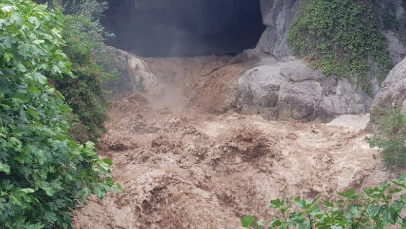 Olayla ilgili bilgi veren mağaranın işletmecisi Eyüp Bahçeci, gece saatlerinde başlayan şiddetli sağanak sonrası mağaraya girişin kapandığını aktardı.