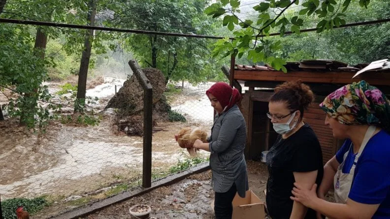 Deredeki suyun geçtikçe yükseldiğini belirten Dizdar, “Kurtarabildiğimiz malzemeleri daha yukarı alıyoruz. Binalara zarar verir mi bilmiyoruz” dedi.