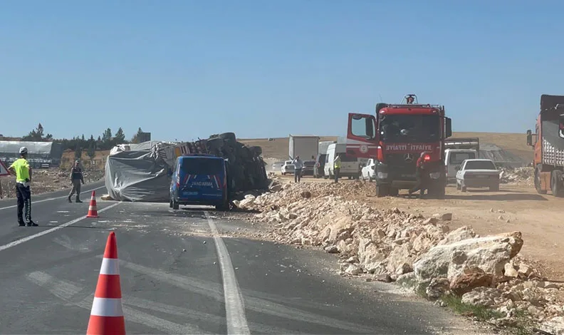 Edinilen bilgiye göre kaza, Şanlıurfa – Suruç karayolunun Payamlı kırsal Mahallesi yol ayrımı yakınlarında yaşandı. M.E.O.’nun kullandığı tır, yapımı devam eden yolda ilerlerken kontrolden çıktı. Devrilen tırın sürücüsü yaralanırken içerisindeki saman balyaları ise yola savruldu.
