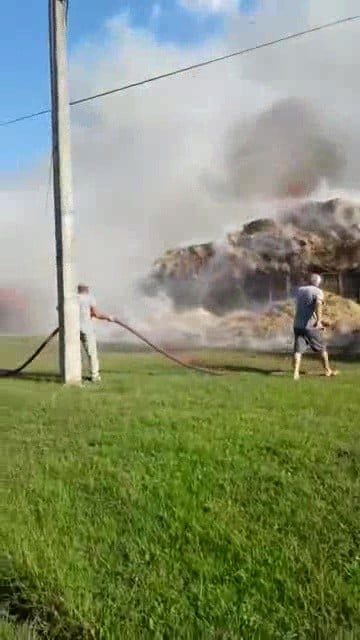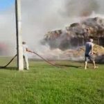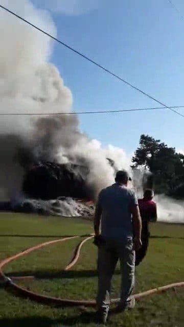 Düzce(İHA) – Düzce’de saman yüklü kamyonun kasasındaki samanların elektrik tellerine takılarak kısa devre yapması sonucu hem kamyon hem samanlar alev alev yandı.