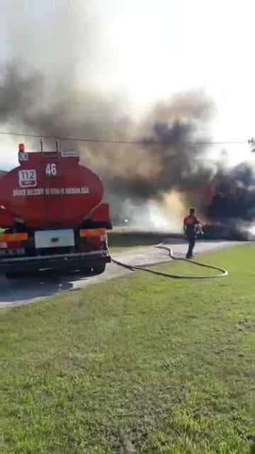 Olay, Düzce merkeze bağlı Duraklar köyünde meydana geldi. Edinilen bilgilere göre, seyir halindeki saman yüklü kamyon elektrik tellerinin altından geçerken tellerin kısa devre yapması sonucu bir anda tutuştu. Samanlardan sıçrayan kıvılcımlar kamyonun ön tarafını tutuşturdu. Bir anda alevlerin sardığı kamyon alev alev yandı. Alevleri gören köylülerin haber vermesi üzerine olay yerine Düzce Belediyesi İtfaiye Müdürlüğü ekipleri gelerek kısa sürede alevlere müdahale etti. İtfaiye ekiplerinin müdahalesi sonucu kontrol altına alınan yangında kamyon küle döndü.