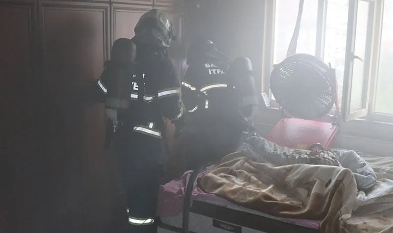 Yangının evin yatak odasında başladığı tespit edilirken, itfaiyenin hızlı müdahalesiyle alevler diğer odalara sıçramadan kontrol altına alındı. Söndürme işleminin ardından yanan eşyalar daireden çıkarıldı ve içeride oluşan yoğun dumanın tahliyesi ile soğutma çalışmaları yapıldı. Yangında dairede maddi zarar meydana geldi.