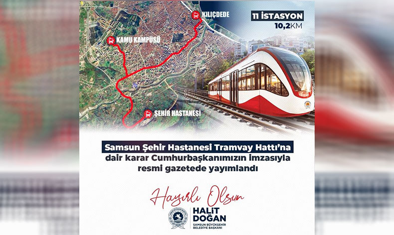 Karar hakkında açıklamalarda bulunan Başkan Halit Doğan, “Samsun Şehir Hastanesi’ne erişimi sağlamanın yanı sıra İlkadım ilçemizden de kuzey-güney ekseninde bir ulaşım hattına kavuşmuş olacağız. Bu şekilde Canik ve İlkadım ilçelerimizde alternatif ulaşım hatlarını hayata geçirmeyi ve hemşehrilerimizin konforlarını arttırmayı hedefliyoruz. Kamu Kampüsü alanına da tramvay bağlantısı sağlayacak projemizle, şehrimizin İlkadım ilçesindeki 33 km’lik alanı da tramvay hattına bağlamış olacağız. Samsun’umuzun ulaşım ağını, hızını ve hemşehrilerimizin konforunu daha ileri taşıyacak proje; Cumhurbaşkanımız Recep Tayyip Erdoğan’ın Samsun’a verdiği önemin ve merkezi hükümetle yerel yönetimlerin uyumlu çalışmalarının önemli bir örneğidir. Cumhurbaşkanımız Erdoğan’a, Ulaştırma ve Altyapı Bakanımız Abdulkadir Uraloğlu’na, TBMM Plan Bütçe Komisyonu Başkanı AK Parti Samsun Milletvekili Mehmet Muş’a genel başkan yardımcılarımıza, milletvekillerimize ve çalışma arkadaşlarımıza şükranlarımı arz ediyorum. Şehrimize ve hemşehrilerimize hayırlı olsun” dedi.
