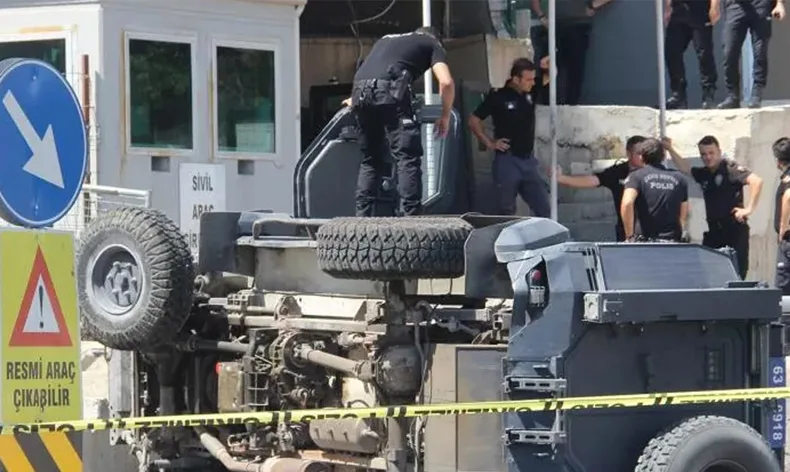 Zırhlı polis aracı devrilmesi sonucu ağır yaralanan bir polis, Şanlıurfa Mehmet Akif İnan Eğitim ve Araştırma Hastanesine kaldırıldı.