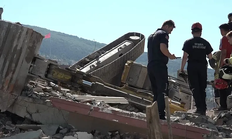Bursa’nın Osmangazi ilçesi Santral Garaj Mahallesi’nde kentsel dönüşüm alanında çalışan ekskavatör, molozların arasında oluşan boşluk sonrası devrildi. Çevredeki vatandaşların ihbarı sonrası olay yerine polis ve 112 acil sağlık ekipleri sevk edildi.