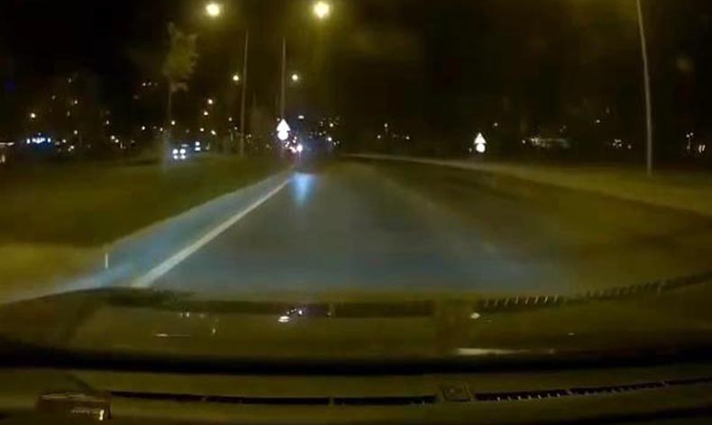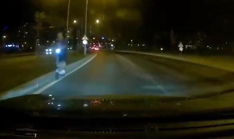 Gecenin karanlığında karşısında scooter gören sürücü, uzun süre kornaya basarak tepkisini dile getirdi.
