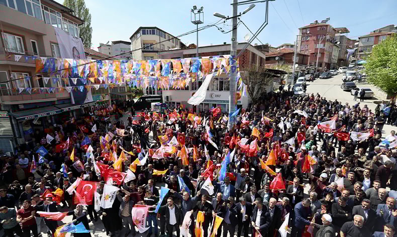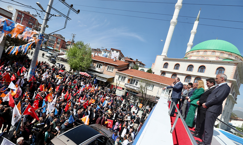 “İnşallah 14 Mayıs’ta o terör örgütlerinin iddialarını, terör örgütlerinin talepleriyle beraber o yedili koalisyonu Allah’ın izniyle tarihin çöplüğüne gönderecek. Bundan sonra eski Türkiye kalıntılarını biz bu ülkede görmeyeceğiz. Başka bir Türkiye olacak. Yeni bir ufuk açılacak. AK Parti olarak 21 yıldır vesayet odakları ve farklı alanlara sirayet etmiş terör örgütleriyle mücadele ettik. Bunu yaparken vatandaşlarımızın ihtiyaçlarını ve hizmetleri asla göz ardı etmedik. Bu ülkeyi kalkındıracak hamleleri asla göz ardı etmedik. Bu ülkeyi kalkındırmak istiyorsak, bunu yapmanın yolu katma değerli işler yapmaktan geçiyor. Türkiye’nin artık teknolojide ve sanayide lider olmasından geçiyor. Bunun yolu da karada Togg’u yapmaktan, denizde TCG Anadolu’yu yapmaktan, uzayda İMECE Uydusunu yapmaktan geçiyor. Biz bunları yaptıkça Allah’ın izniyle ekmeğimizi büyüteceğiz. Ekmeğimizi büyüttükçe vatandaşımızın refahını da arttıracağız. Çok daha müreffeh, çok daha aydınlık günleri hep beraber inşa edeceğiz.”
