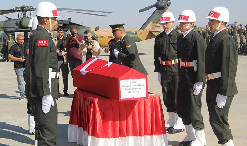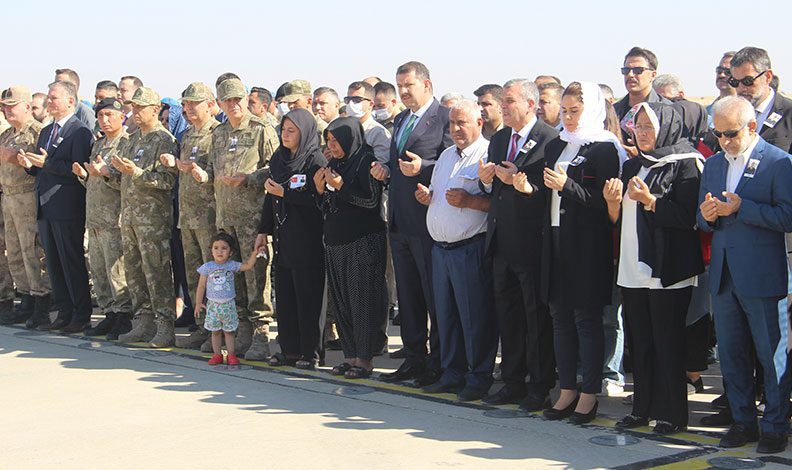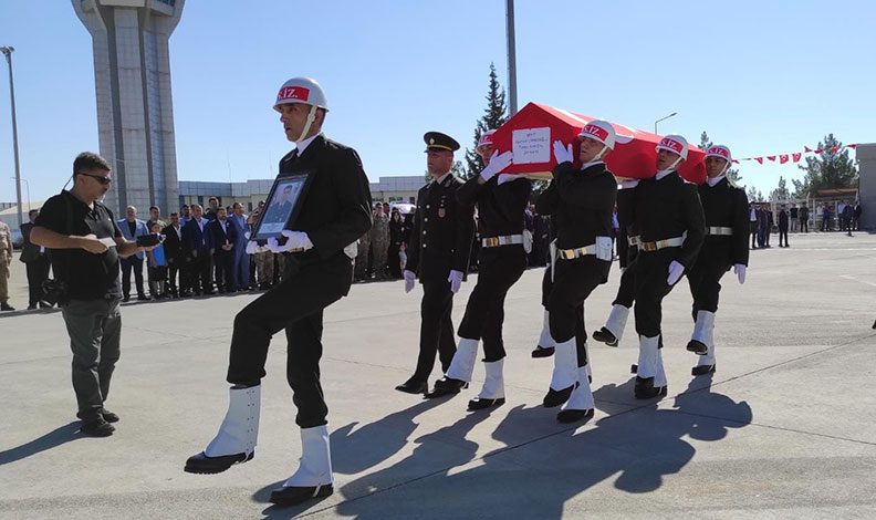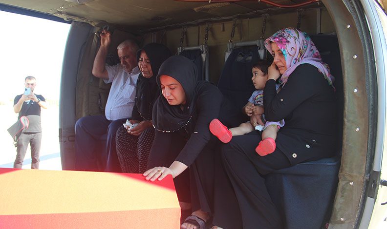 Törende, saygı duruşunun ardından şehidin özgeçmişi okundu. İl Müftüsü Ramazan Tolan’ın okuduğu duanın ardından omuzlara alınan şehidin naaşı, helikoptere konularak hava yoluyla memleketi Kilis’e gönderildi.
