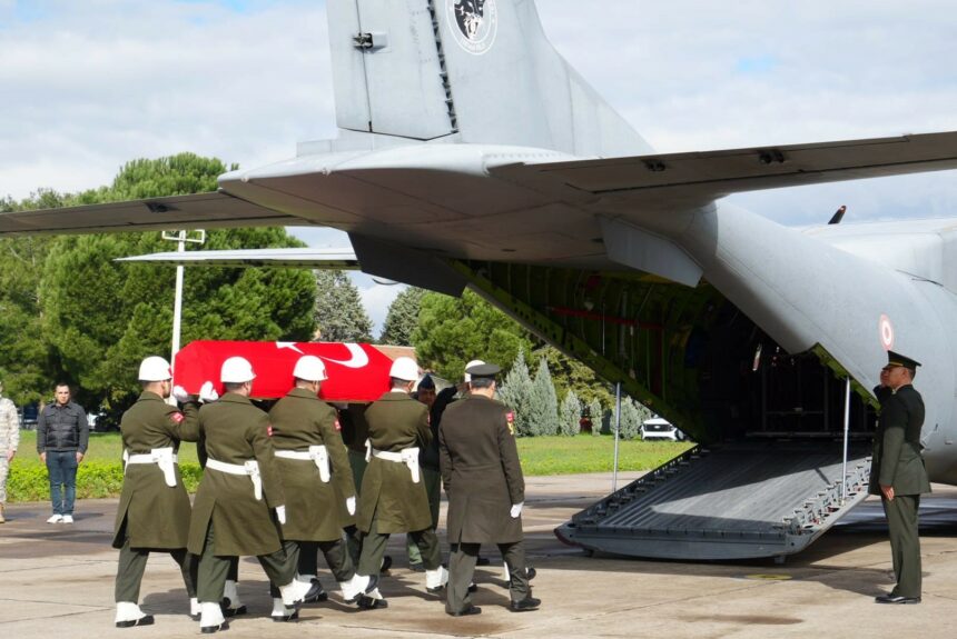 Şehidin cenazesi dua okunmasının ardından askerlerin omuzlarında uçağa taşınarak memleketi İzmir’e uğurlandı.