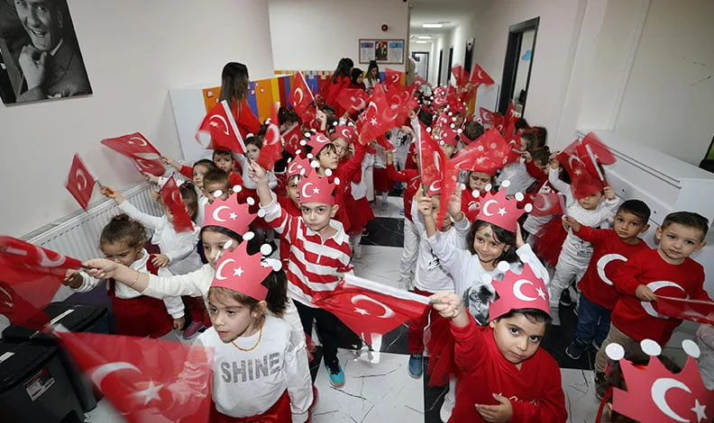 Fatih kreşinde eğitim gören minikler, Cumhuriyet’in 101. yılı dolayısıyla anlamlı bir etkinliğe imza attı. TUSAŞ’ta yaşanan hain saldırı nedeniyle etkinlik müziksiz gerçekleşti. Minik öğrenciler, bayrak gösterisi yapıp, marşlar okuyarak cumhuriyet coşkusunu yaşadı. Etkinlik kapsamında Türkiye Cumhuriyeti kurucusu Gazi Mustafa Kemal Atatürk’ün hayatına dair kitap okuma etkinliği de düzenlendi. Çocuklar, Atatürk’ü tanımak için öğretmenleri eşliğinde okuma etkinliği gerçekleştirdi. Sınıflar, Türk bayrakları ile süslenerek bayram havası yaşandı. Miniklerin heyecanı ve coşkusu, hem öğretmenler hem de veliler tarafından büyük beğeni topladı.