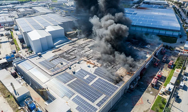 Yangının boyutu ve ekiplerin müdahalesi dron ile görüntülendi. Görüntülerde fabrikanın çatı kısmının tamamen yandığı, itfaiye ekiplerinin alevlere farklı noktalardan müdahale ettiği görüldü.