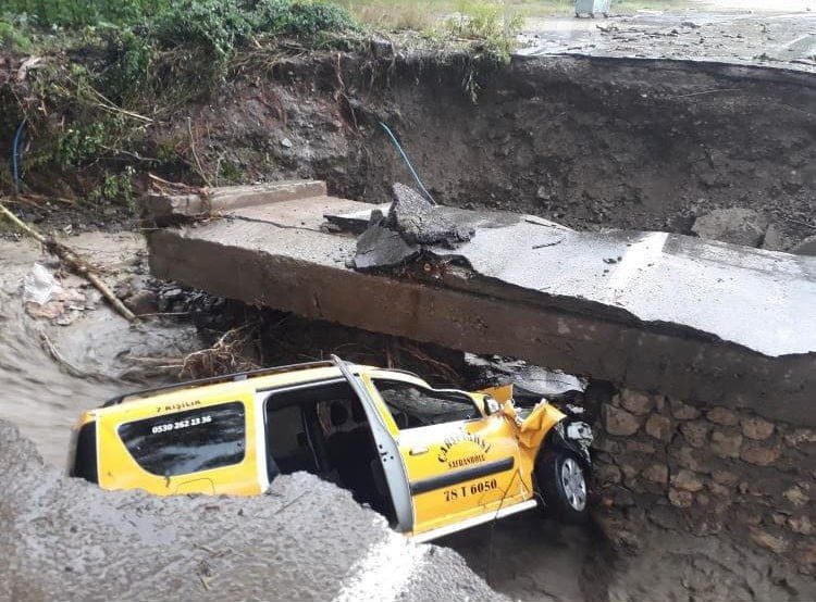 Öte yandan sel nedeniyle Bartın Karabük yolu Bahçecik mevkiinde yollar göçerken araçlar ağır hasar aldı.