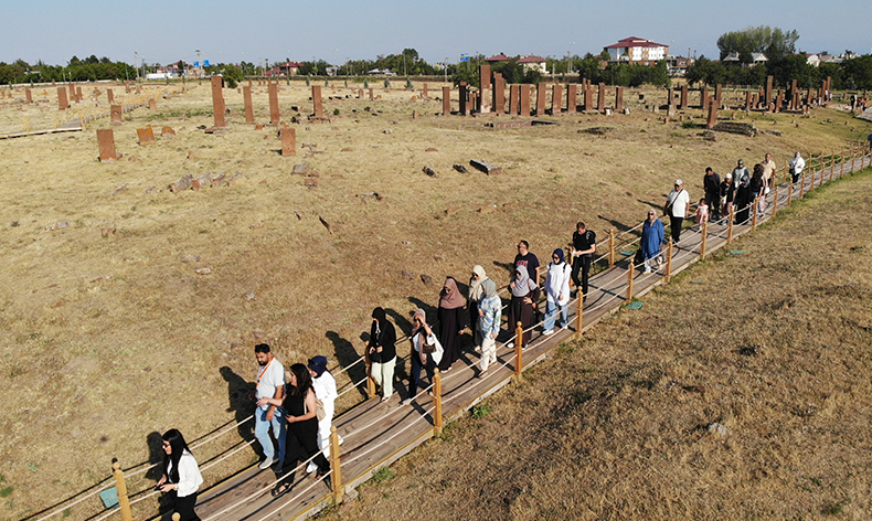 Ahlat ilçesinin İkikubbe Mahallesi’nde 8 bin 200 mezarı bünyesinde barındıran 210 dönümlük dünyanın en büyük Türk İslam Mezarlığını son 6 ayda 200 binden fazla kişi ziyaret etti. Sanat eseri özelliği taşıyan ve üzerlerindeki kabartmalar, motifler, oymalar, kitabeler ve yazılarla tarihe ışık tutan abidevi mezar taşları, ziyaretçilerini zamanda yolculuğa çıkarıyor.