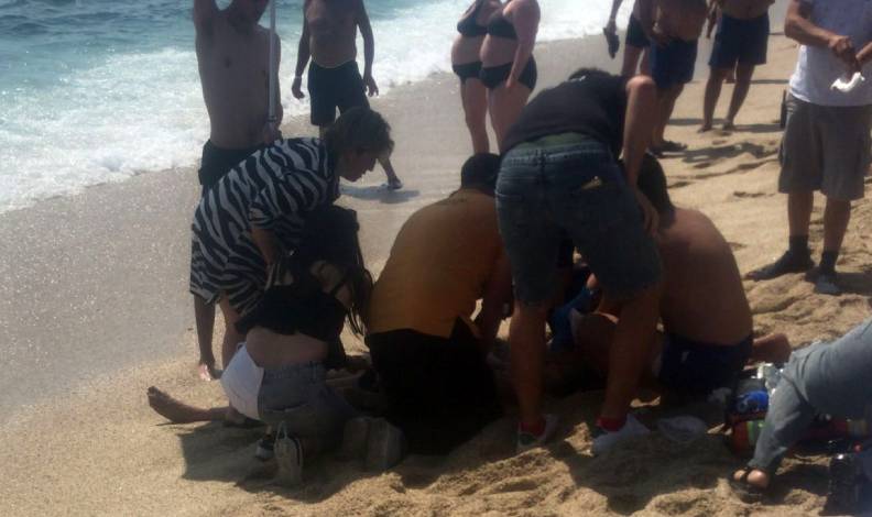 Turiste müdahalede bulunan vatandaşlardan Fırat Erbeyli, “Cankurtaranın koştuğunu görünce bende oraya doğru yöneldim. Adamın kumsalda yarı baygın yattığını gördüm. Direkt müdahalede bulunduk. 5 dakika kadar kalp masajı yapıldı. Daha sonra ambulans geldi. Yüzü solmuştu. Yabancıydı, 55 yaşlarındaydı. İnşallah kurtulur” dedi.