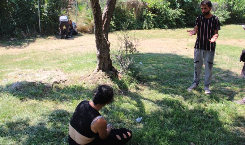 İhbarın ardından olay yerine polis ve sağlık ekipleri sevk edildi. Parka gelen polis ekipleri, iki sevgiliyi ayrı noktalara götürdü. Polis kendinden geçen kadının, yakıcı güneşten etkilenmemesi için başında bekleyerek gölge oluşmasını sağladı.
