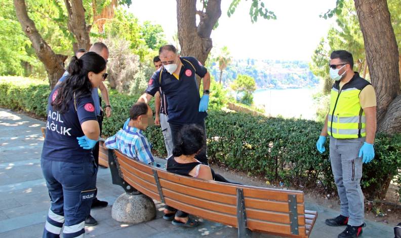 İhbarın ardından olay yerine polis ve sağlık ekipleri sevk edildi. Parka gelen polis ekipleri, iki sevgiliyi ayrı noktalara götürdü. Polis kendinden geçen kadının, yakıcı güneşten etkilenmemesi için başında bekleyerek gölge oluşmasını sağladı.