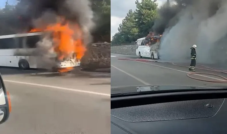 Olay, 15.30 sıralarında Bursa-Gemlik yolu Dürdane rampası üzerinde meydana geldi. Edinilen bilgiye göre, yolcu otobüsü motor kısmından yaptığı arıza sonucu seyir halindeyken alev almaya başladı. Otobüs şoförü, aracın alev aldığını görünce hemen emniyet şeridine yanaştı. Kısa sürede büyüyen alevler otobüsü sararken, araçtakiler 112 ekiplerine ulaştı. İhbar üzerine olay yerine sevk edilen itfaiye ekipleri alevleri kısa sürede söndürürken, otobüs kullanılamaz hale geldi. Olayla ilgili tahkikat başlatıldı.