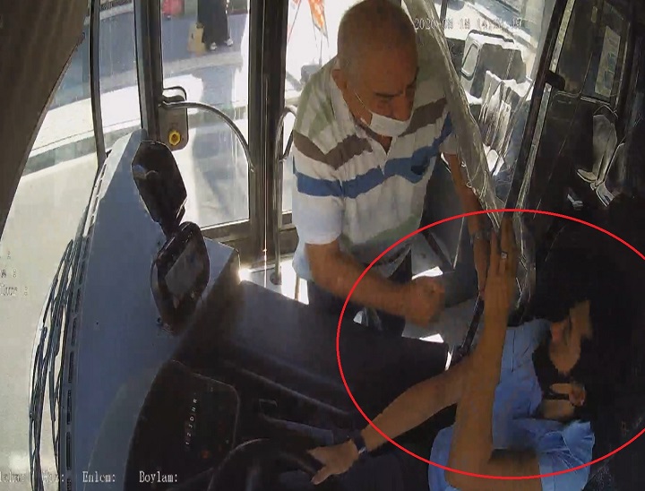 Bursa’da halk otobüsü şoförü İsmail Alay, maskeyi çenesine taktığı için uyardığı yolcunun saldırısına uğradı. O anlar, otobüsün güvenlik kameralarına yansıdı.